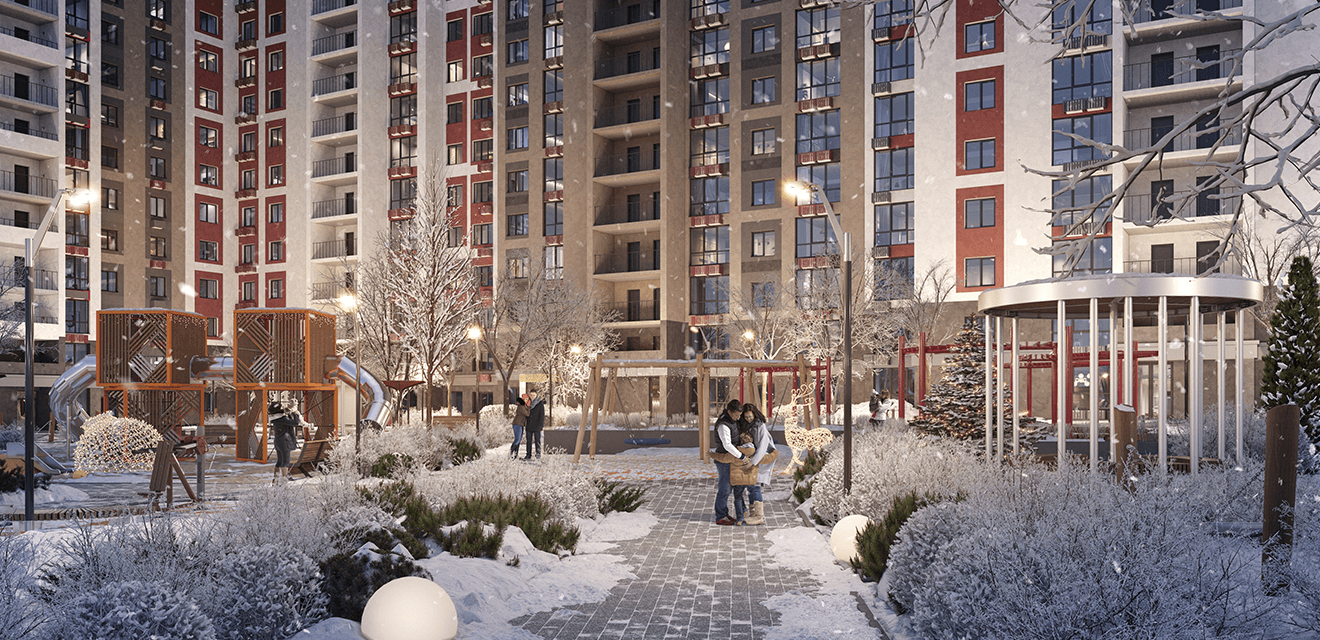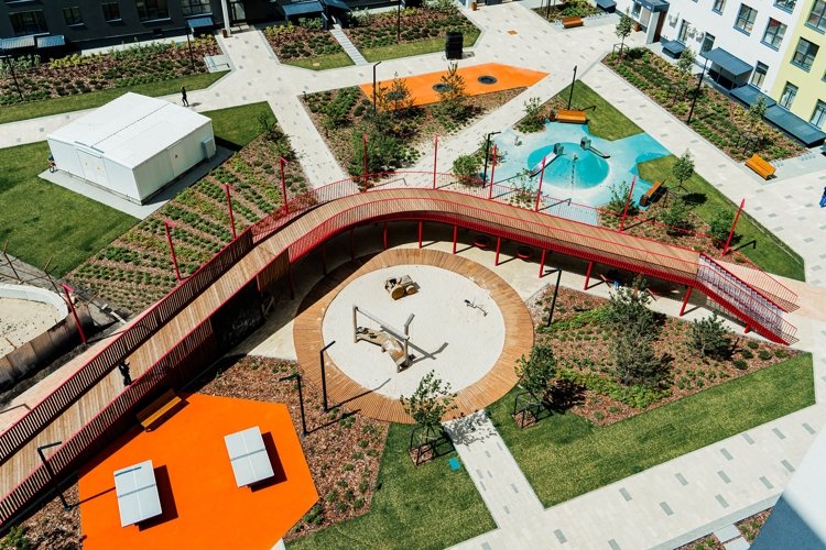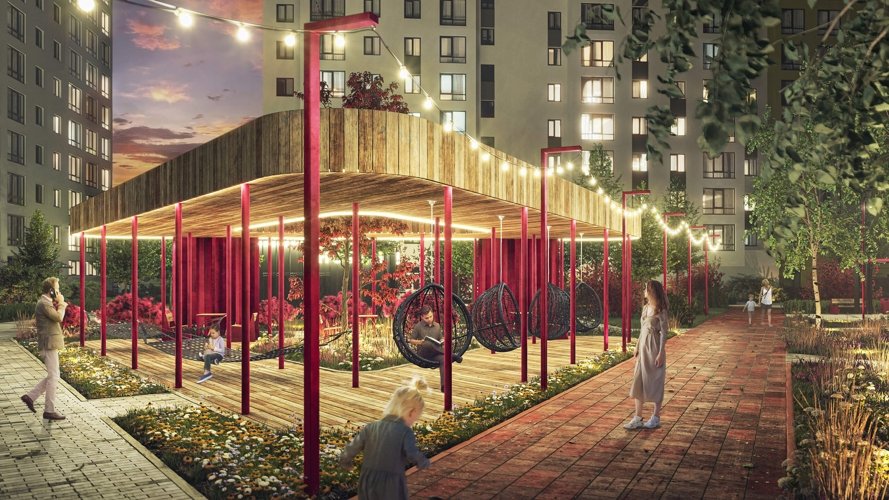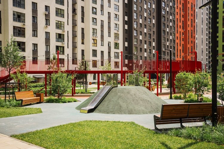 Территория жилого комплекса хорошо спланирована и обустроена. Детские и спортивные площадки, зелёные зоны для прогулок, сквер, где можно насладиться природой после трудового дня - всё это создает атмосферу спокойствия и гармонии.