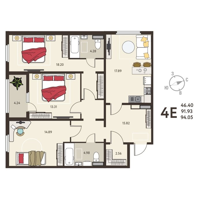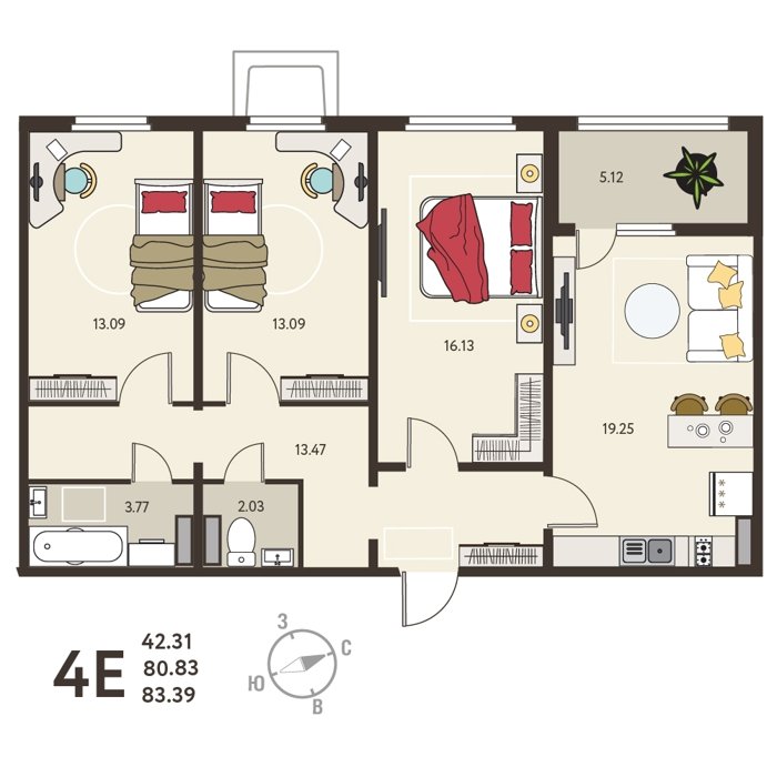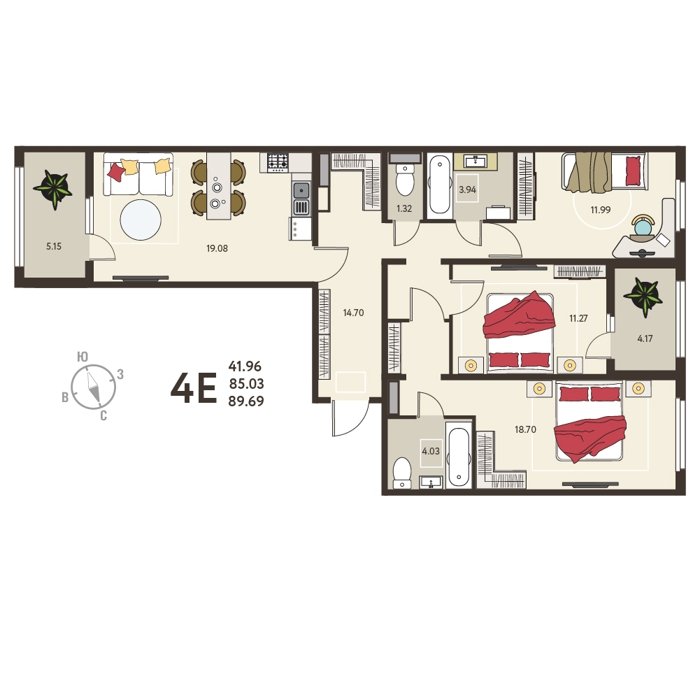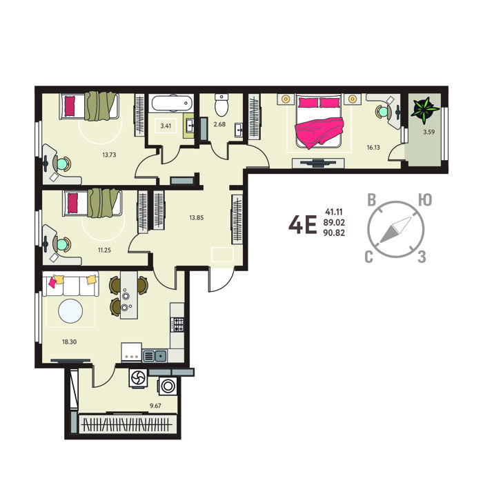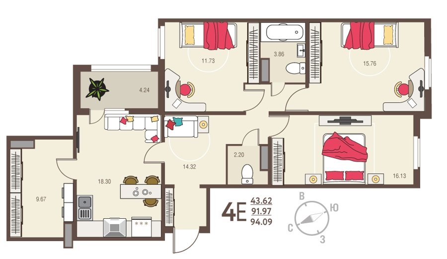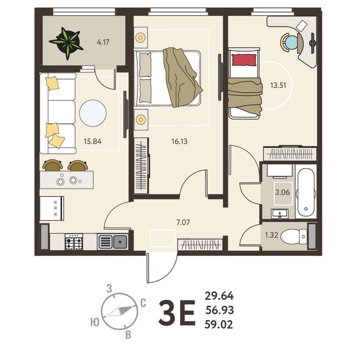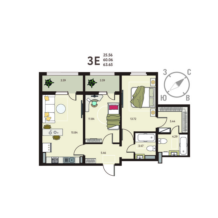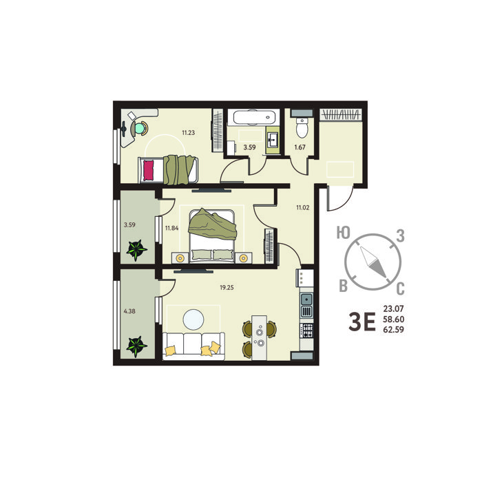 Площадь от 59 м2