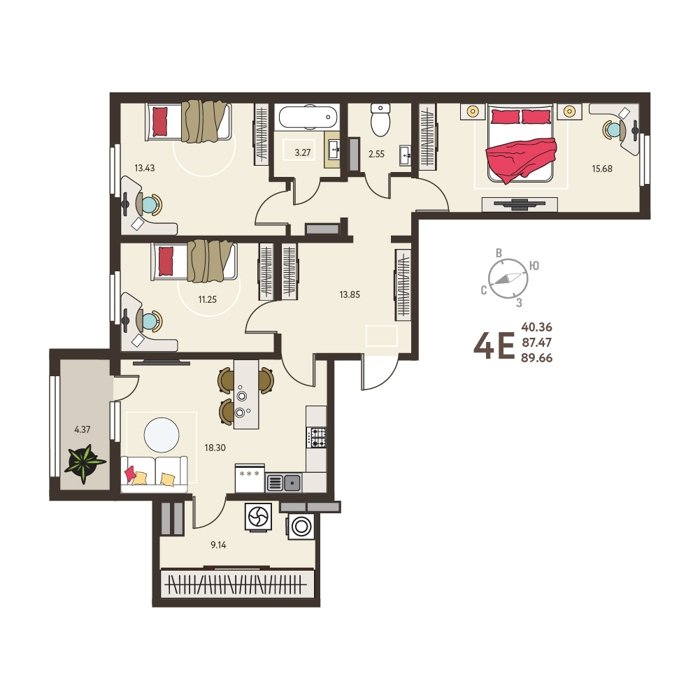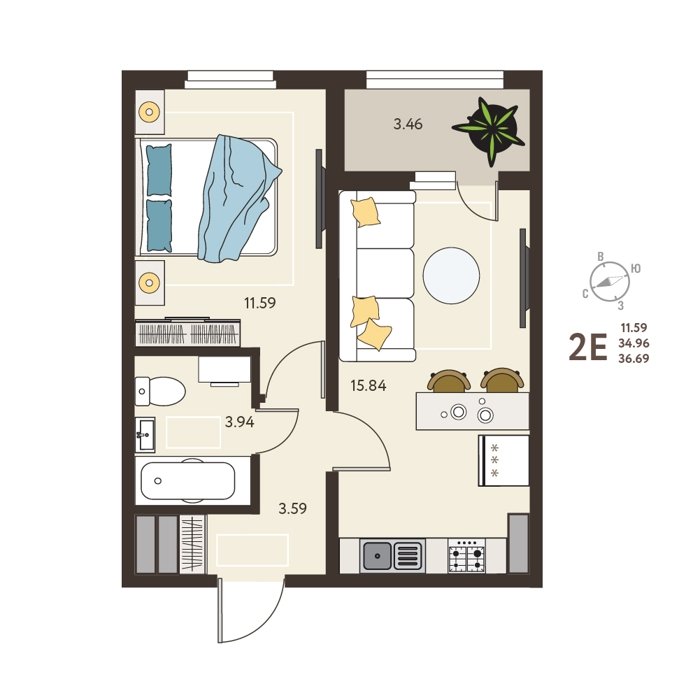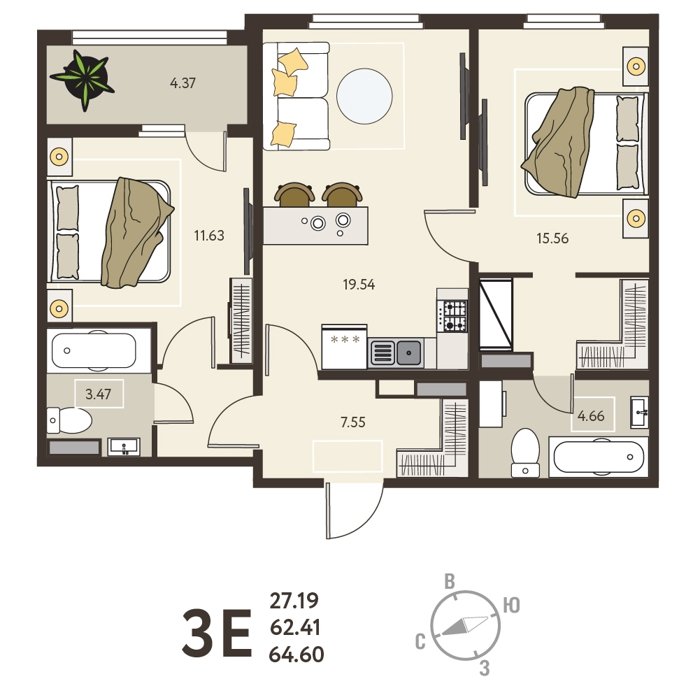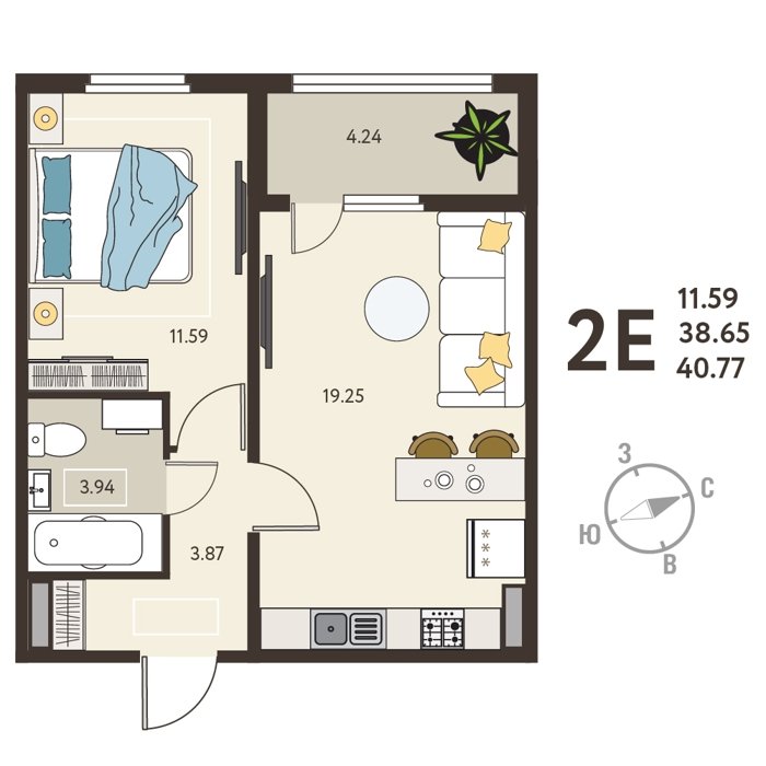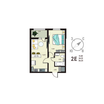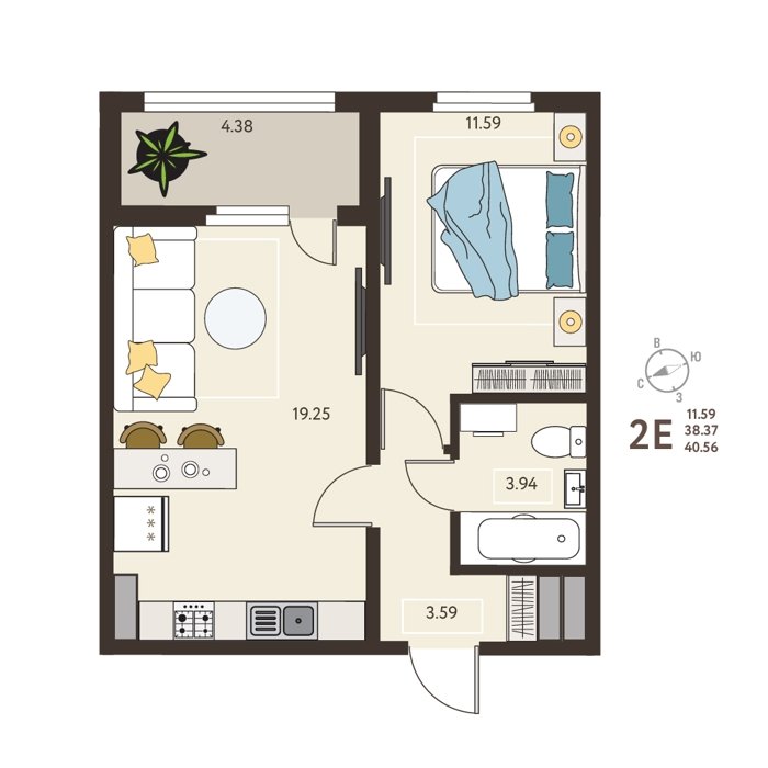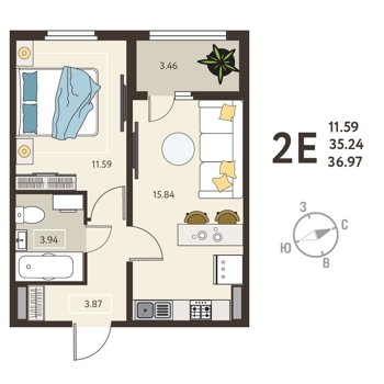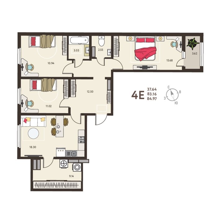 Площадь от 37 м2