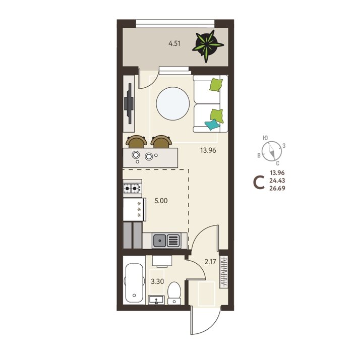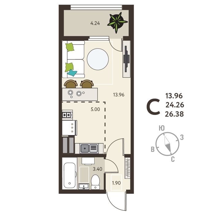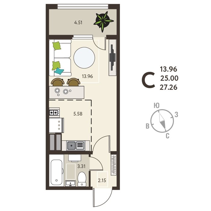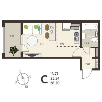 Площадь от 26 м2