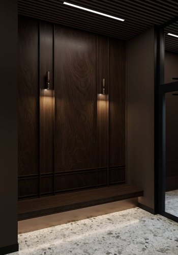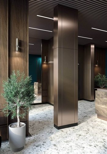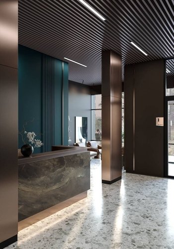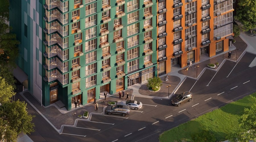 Во входной зоне предусмотрен современный лобби, украшенный изысканным дизайном интерьера, где царит атмосфера спокойствия и релаксации. Окна верхних этажей раскрывают потрясающую панораму городских улиц, давая возможность полюбоваться красотой исторического центра города. Вид на благоустроенную придомовую территорию с зелёными газонами, декоративными кустарниками и деревьями создаст приятную атмосферу для утренних чашечек кофе или вечернего отдыха.
